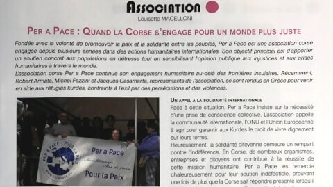 PER A PACE : QUAND LA CORSE S'ENGAGE POUR UN MONDE PLUS JUSTE Fondée avec la volonté de promouvoir la paix et la solidarité entre les peuples, Per a Pace est une association corse engagée depuis plusieurs années dans des actions humanitaires internationales. Son objectif principal est d'apporter un soutien concret aux populations en détresse tout en sensibilisant l'opinion publique aux injustices et aux crises humanitaires à travers le monde. L'association corse Per a Pace continue son engagement humanitaire au-delà des frontières insulaires. Récemment, Robert Armata, Michel Fazzini et Jacques Casamarta, représentants de l'association, se sont rendus en Grèce pour venir en aide aux réfugiés kurdes, contraints à l'exil par des persécutions et des violences. UNE MISSION HUMANITAIRE D'ENVERGURE Depuis 2021, c'est la cinquième action solidaire menée par Per a Pace, après des initiatives similaires en faveur des réfugiés syriens, des populations déplacées en Irak, ainsi que des missions d'aide auprès des migrants en Italie et en Espagne et des populations kurdes déplacées. Cette nouvelle initiative a permis d'acheminer des denrées alimentaires, du matériel d'hygiène et des toiles de tente, répondant ainsi aux besoins urgents de ces familles en détresse. Mais au-delà du simple acte de solidarité matérielle, l'association a voulu témoigner des conditions inacceptables dans lesquelles ces réfugiés survivent. Les membres de Per a Pace ont rencontré sur place des hommes et des femmes de tous horizons, marques par la douleur de l'exil mais également par une profonde humanité. « Ces populations n'avaient qu'un souhait continuer à vivre dans leur pays, mais elles ont été contraintes de fuir face aux persécutions et aux violences », témoignent-ils. LE DRAME KURDE : UNE TRAGÉDIE IGNORÉE L'histoire du peuple kurde est marquée par une injustice historique : à la chute de l'Empire ottoman, la promesse de la création d'un État kurde n'a jamais été tenue. Aujourd'hui encore, les Kurdes, répartis entre la Turquie, la Syrie, l'Irak et l'Iran, subissent répression et discriminations. Le drame des réfugiés kurdes en Grèce est aggravé par l'abandon de la gestion des camps par le Haut-Commissariat aux Réfugiés (HCR) et l'inaction de l'Union Européenne, qui semble céder à la pression diplomatique de la Turquie. « Quand on veut chasser une population de sa terre, on l'accuse de terrorisme », dénoncent les membres de Per a Pace, fustigeant une politique internationale qui tourne le dos à ces exilés. UN APPEL A LA SOLIDARITÉ INTERNATIONALE Face à cette situation, Per a Pace insiste sur la nécessité d'une prise de conscience collective. L’association appelle la communauté internationale, l'ONU et l'Union Européenne à agir pour garantir aux Kurdes le droit de vivre dignement sur leurs terres. Heureusement, la solidarité citoyenne demeure un rempart contre l'indifférence. En Corse, de nombreux organismes, entreprises et citoyens ont contribué à la réussite de cette mission humanitaire. Per a Pace les remercie chaleureusement pour leur soutien indéfectible, prouvant une fois de plus que la Corse sait répondre présente lorsqu'il s'agit de défendre les valeurs d'humanité et de justice. L’engagement de l'association ne s'arrête pas là. Forte de ses valeurs de paix, de justice et de solidarité, Per a Pace poursuit son action pour sensibiliser et mobiliser l'opinion publique sur les injustices subies par les populations déplacées. A travers ses missions, elle aspire à renforcer les liens entre les peuples et à promouvoir un monde plus équitable, où chaque individu puisse vivre dignement sur sa terre natale. L’association compte poursuivre ses initiatives en faveur des réfugiés et maintenir la pression sur les instances internationales pour que des solutions durables soient trouvées. Par le biais de témoignages et d'actions concrètes, Per a Pace entend continuer son combat pour une solidarité sans frontières, en espérant que la voix des Kurdes soit enfin entendue.